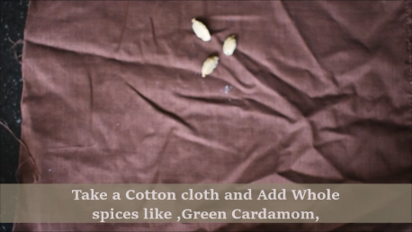 Take muslin cloth first, Add all the spices like cardamom and others and prepare a pocket.