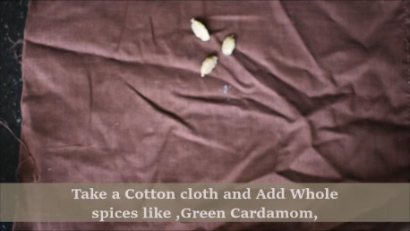 - Take muslin cloth first ,Add all the spices like cardamom and other and prepare a pocket .3 nos green cardamom, 1 inch cinammon stick, 1 muslin cloth, ½ teaspoon (0.5 teaspoon) cumins